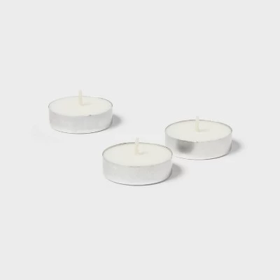 12pk Unscented Tealights White – Room Essentials™: Paraffin Wax, 4hr Burn Time, 1 Wick Tea Lights