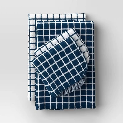 7pc Starter Kitchen Textile Set Dark Blue – Room Essentials™: Dish Towels, Hot Pads & Oven Mitts, Pot Holders, Kitchen Towels