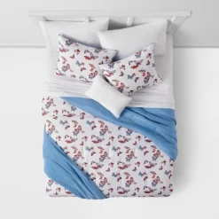 Butterfly Print Microfiber Decorative Bed Set With Throw Blue/Red/White – Room Essentials™