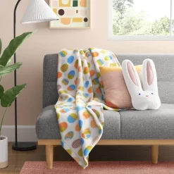 Bring cheerful Easter vibes to your space with this Bunny Pillow. This novelty throw pillow is shaped like a white bunny face, featuring embroidered blue and red details and long projecting ears with pink interiors for a sweet, toy-like 3D look. With its soft, fuzzy exterior and well-filled interior, this decorative pillow looks great whether added to a couch or armchair alongside other accent pillows or displayed solo in a special spot in your home.