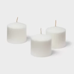 3″ X 3″ 3pk Unscented Pillar Candle Set White – Room Essentials™: Paraffin Wax, 30hr Burn Time