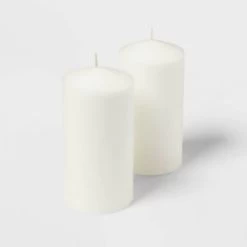 3″ X 6″ Unscented Pillar Candles White – Room Essentials™: 90 Hours Burn, Paraffin Wax, No Scent
