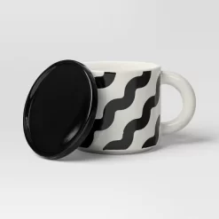17 Fl Oz Stoneware Squiggly Print Lidded Mug – Room Essentials™